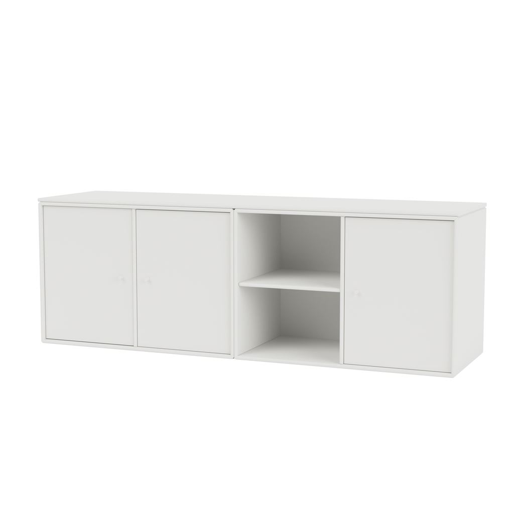 Smuk skænk med ben fra Montana. Med den lave skænks praktiske moduler bestående af tre skabe med dertilhørende hylder samt to åbne hylder er dette en opbevaringsløsning, som egner sig perfekt til fine sager, som ønskes udstillet, såvel som ting, der ønskes gemt væk. Lad skænken pryde sammen med din personlige udstilling af smukke ting i eksempelvis stuen eller spisestuen, og få praktisk opbevaring til servietter, lys, magasiner mv. på én og samme tid. Skænken kommer med en topplade, hvilket giver den et smukt finish. Fordi skænken består af to moduler, kan disse anvendes som individuelle opbevaringsmoduler, hvis behovet for opbevaring ændrer sig. Det er derfor en yderst alsidig opbevaringsløsning, der rummer flere anvendelsesmuligheder. SAVE fås med ben, sokkel eller ophængsbeslag.