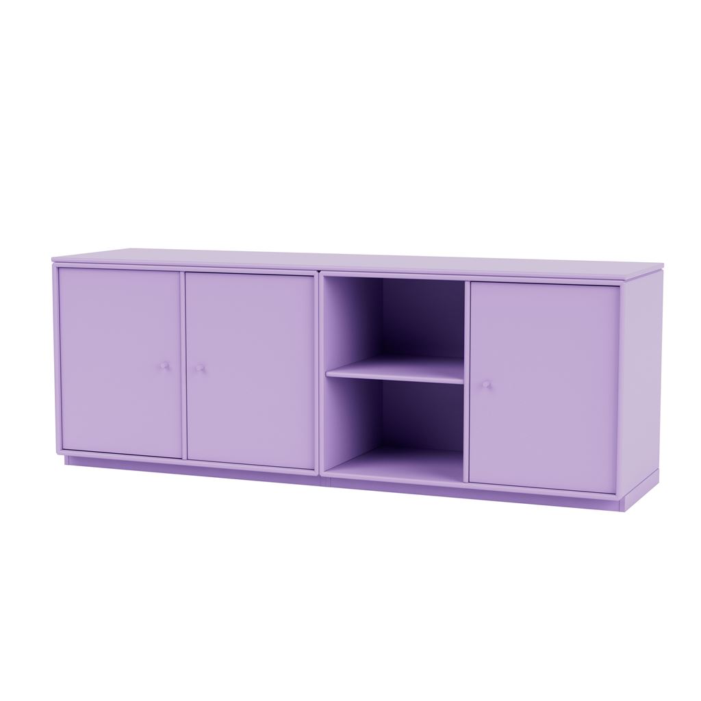 Smuk skænk med ben fra Montana. Med den lave skænks praktiske moduler bestående af tre skabe med dertilhørende hylder samt to åbne hylder er dette en opbevaringsløsning, som egner sig perfekt til fine sager, som ønskes udstillet, såvel som ting, der ønskes gemt væk. Lad skænken pryde sammen med din personlige udstilling af smukke ting i eksempelvis stuen eller spisestuen, og få praktisk opbevaring til servietter, lys, magasiner mv. på én og samme tid. Skænken kommer med en topplade, hvilket giver den et smukt finish. Fordi skænken består af to moduler, kan disse anvendes som individuelle opbevaringsmoduler, hvis behovet for opbevaring ændrer sig. Det er derfor en yderst alsidig opbevaringsløsning, der rummer flere anvendelsesmuligheder. SAVE fås med ben, sokkel eller ophængsbeslag.