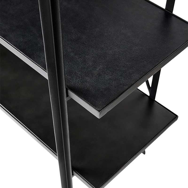 Den rustikke Austin reol fra MUUBS er designet af Birgitte Rømer og Nicklas Lohmann og er designet med øje for at skabe en solid reol med et let udseende med de karakteristiske træk fra Austin serien. Reolens stel er fremstillet af pulverlakeret jern og hylderne er beklædt med okselæder samt samt jern. Reolen har et maskulint og industrielt udseende og er et moderne møbel som er klar til at fremvise ting som for eksempel flotte pyntegenstande eller bøger. Læderet vil med tiden få patina.