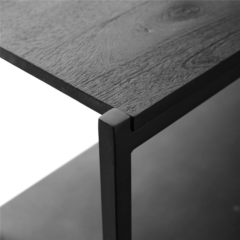 Nevada er indbegrebet af industrielt design, den er fremstillet af jern og mangotræ og har et råt og moderne udtryk med elegante detaljer. Den øverste hylde er sortmalet mangotræ, og udover at skabe en spændende kontrast til jernet, er det en smuk detalje. Nevada reolen kan med fordel også kombineres med øvrige møbler i det kendetegnende materiale. Hylden har en god størrelse, uden at fylde for meget og anvendelsesmulighederne er mange. Den kan for eksempel bruges i entreen eller køkkennet til ekstra opbevaring, men kan også bruges i stuen til alt dit yndlingspynt eller som barbord. Den kan fyldes med kasser, eller bare bruges som den er.