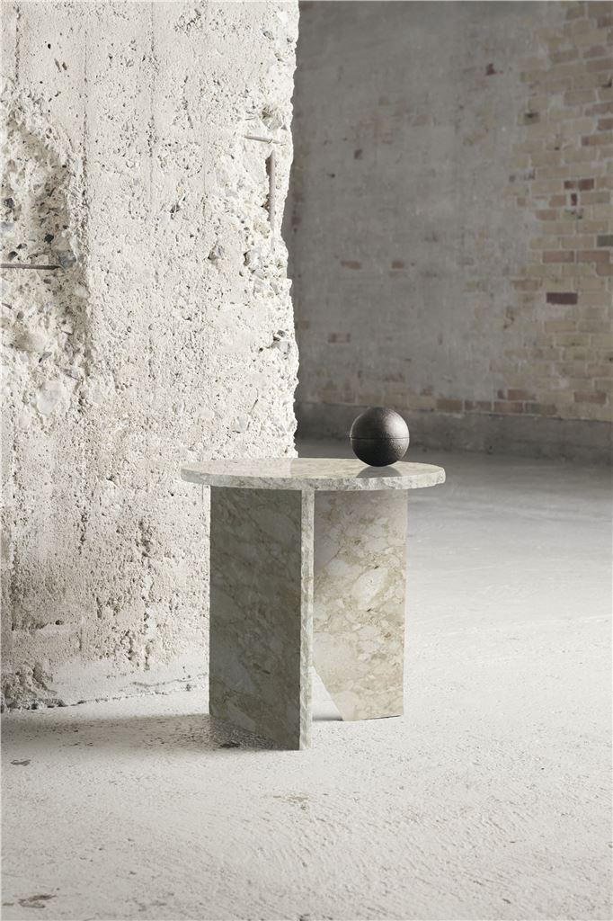 Det smukke sidebord Verde er lavet med en tidløs appel i et smukt, lyst marmor. Navnet Verde kommer fra seriens oprindelige design, skabt i grønt marmor.