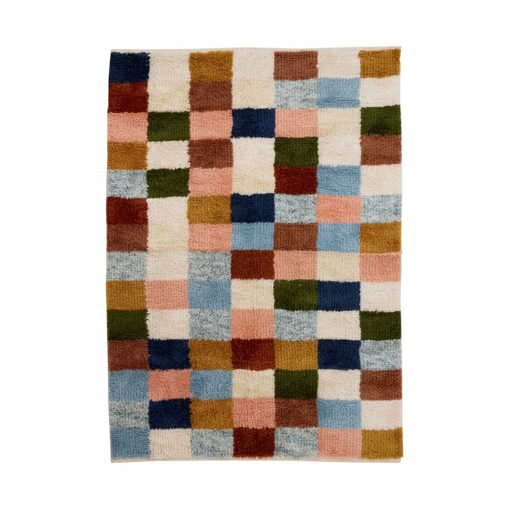 Nordals PAKKA tæppe tilfører farve, struktur og personlighed til indretningen. Det håndlavede uldtæppe har et dekorativt, patchwork-inspireret mønster i varme og harmoniske nuancer, som skaber en hyggelig og levende stemning i rummet. Det bløde materiale føles behageligt under fødderne og bidrager med naturlig varme til hjemmet.