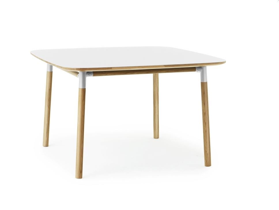 Skønt bord fra Normann Copenhagen. Form bordet er designet af Simon Legald, og har ligesom resten af serien fokus på enkelthed, og det innovative, hvilket gør bordet til et perfekt match til Form stolene. Bordets form er rektangulært med afrundede kanter, en bordplade af hvid laminat og et stel af eg - Begge dele bidrager til en højere holdbarhed og giver bordet et eksklusivt udseende. Overfladen er behagelig at røre ved og det er let at vedligeholde. Egetræet lakeret og monteres på bordets plade ved hjælp af det samme innovative kopesystem som Form stolene. Det unikke spisebord kombinerer et stærkt designsprog med en innovativ industriel designproduktion og tilføjer et moderne udtryk til ethvert rum. Bordet leveres fladt pakket, og er nemt at samle med hjælp fra den vedlagte samlevejledning.