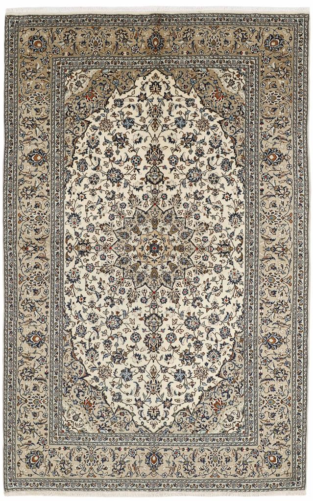 Keshan-tæpper er ofte opbygget omkring en central medaljon, som delvist gentages i tæppets hjørner. Resten af fladen er rigt dekoreret med naturtro blomster, r Se mere ...