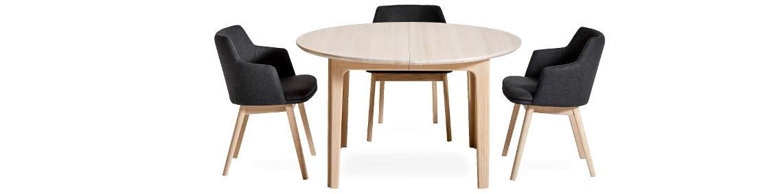 Skovbys flotte runde bord, som kan få en længde på hele 330 cm og rumme op til 12-14 personer. To matchende tillægsplader medfølger og der kan tilkøbes 2 ekstr Se mere ...