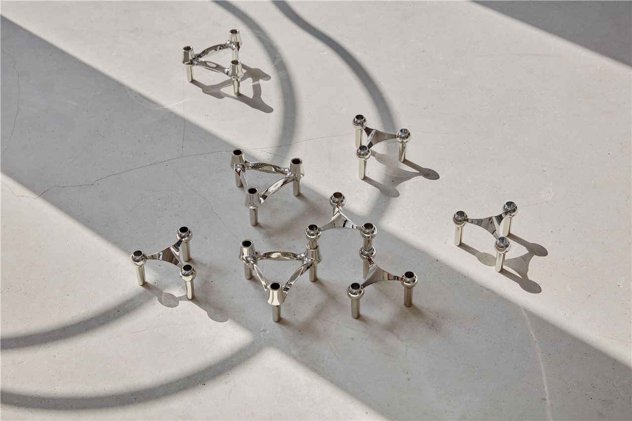 En iøjnefaldende lysestage fra STOFF Nagel, en relancering af den ikoniske BMF lysestage. Lysestagen har en lang historie og blev oprindeligt designet af firmaet Nagel i slutningen af 1960'erne. Kort efter lanceringen blev lysestagen overdraget til firmaet BMF, som producerede den fra 1971-1985. Lysestagen er nu blevet en del af Stoff Nagel og genopliver nu den ikoniske design historie. Lysestagen er en smuk detalje til enhver indretning. Den ikoniske lysestage er som en formbar skulptur, der blot venter på at antage form fra dine kreative hænder. Du kan eksempelvis vælge at stable flere lysestager i forskellige højder. Kun fantasien sætter grænser for, hvordan lysestagen kan sammensættes til en unik lille skulptur i din indretning.