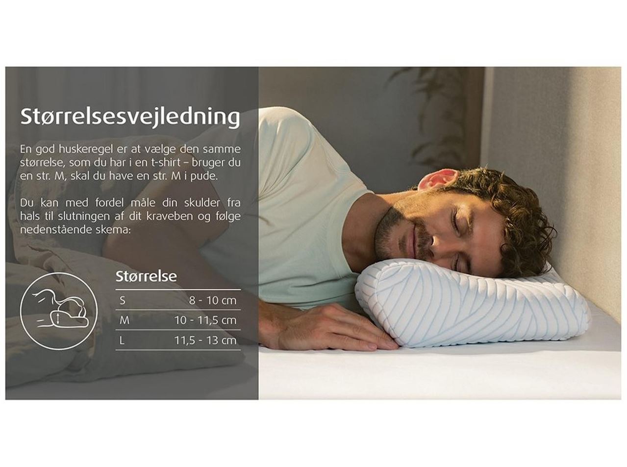 ErgoPlus pudens buede kant giver god støtte og hjælper med at holde din nakke lige, uanset om du sover på ryggen eller siden. Den forreste kant hælder en smule fremad, omslutter nakken og giver utrolig god komfort og støtte. Desuden er puden fremstillet med SmartCool betræk, som regulerer sig efter din kropstemperatur og giver en kølende fornemmelse, som sikrer en behagelig og beroligende søvn hele natten.