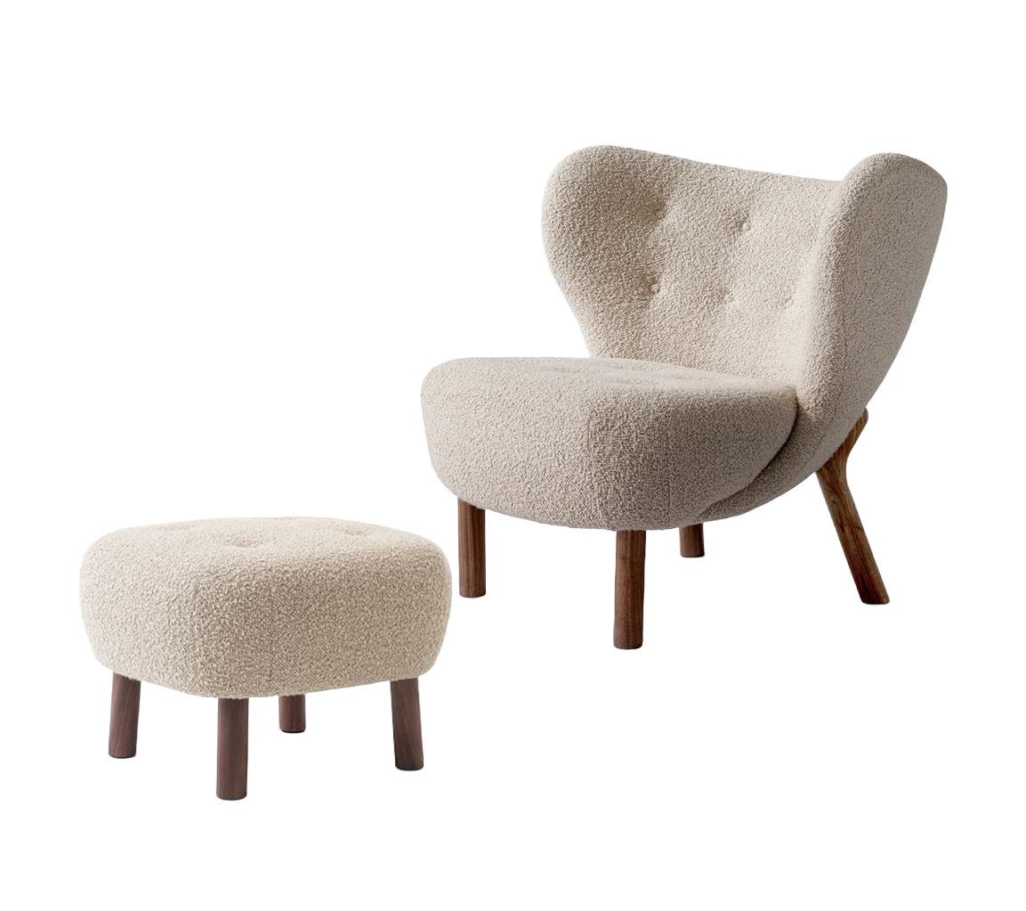 &Tradition Little Petra VB1 Loungechair & Pouf - Oiled Walnut/Sheepskin Honey 08Skøn loungestol og puf fra &Tradition, designet af Viggo Boesen. Oprindeligt bl