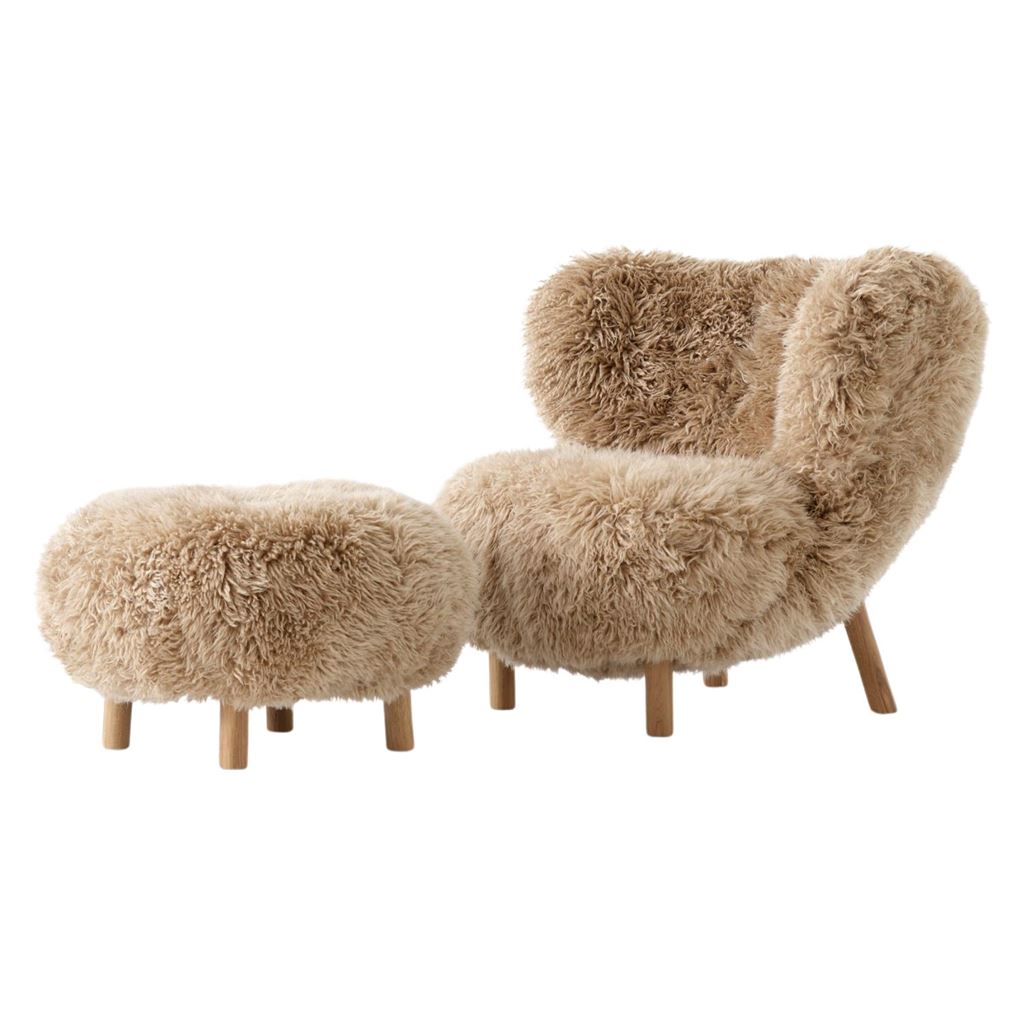 &Tradition Little Petra VB1 Loungechair & ATD1 Pouf - Oiled Oak/Sheepskin Sahara