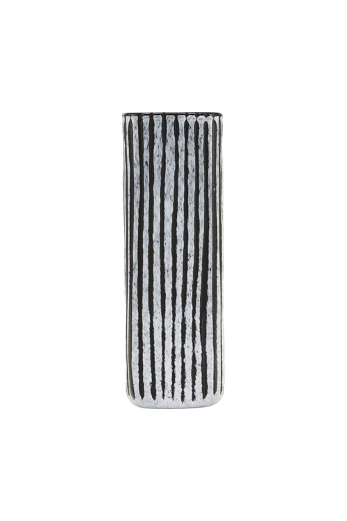 Skøn vase fra House Doctor. Med denne vase kan du fremhæve dine blomster på særdeles fin vis. Den fine vase er fremstillet af glas med striber, der er skåret ind i overfladen for et tilfældigt og håndlavet udtryk. I kombination med den lysegrå glasur med marmoreffekt, skaber det en vase hvor overflade, farver og form forenes på fin vis. Brug Surat vasen sammen i kombination med flere vaser for at skabe et personligt og skulpturelt udtryk i vindueskarmen. Den vil se lige så fin ud sammen med dekoration og nips i samme farveskala, uanset materiale.