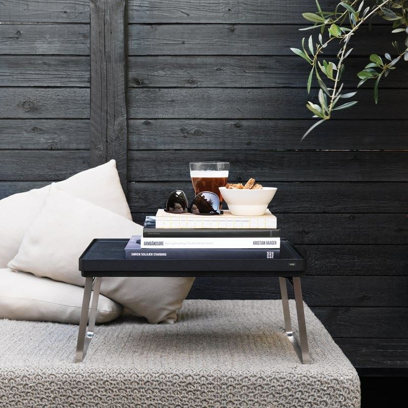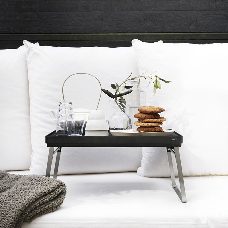 Smukt lille bakkebord fra danske Vipp. Klassisk nordisk design med rene smukke linjer. Brug bakken til morgenmad på sengen, til computeren eller kaffen på sofaen. Du kan også bruge den lille bakke som et lille picnic bord udendørs. Bordet kan nemt klappes sammen og der medfølger en skridsikker sliikonemåtte.