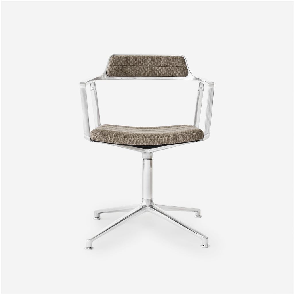 Vipp 452 Swivel Stol m. Hjul - Aluminium/Off-White/Light GreyVipp 452 Stolen har en poleret aluminiumsramme med afrundede armlæn og en smal rygstøtte. Kombinat