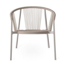Den lave Lagrasse loungestol har en enkel pulverlakeret aluminiumsramme med et rundet ryglæn, der elegant flyder over i de brede armlæn. Flettede snore omkring ryglænet og armlænene fremhæver det lette og luftige design, som er kendetegnende for Lagrasse-kollektionen.