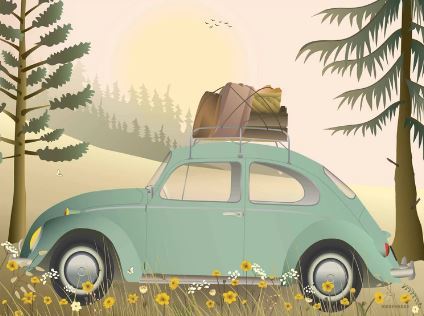 Den flotte VW Camper plakat fra VisseVasse har et optimistisk og nordisk grafisk udtryk. Smuk plakat fra Vissevasse med en skøn "Boble-bil" på vej på skovtur. Brug plakaten alene, eller lav en smuk blilledvæg med flere skønne motiver fra VisseVasse.
