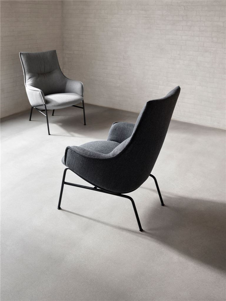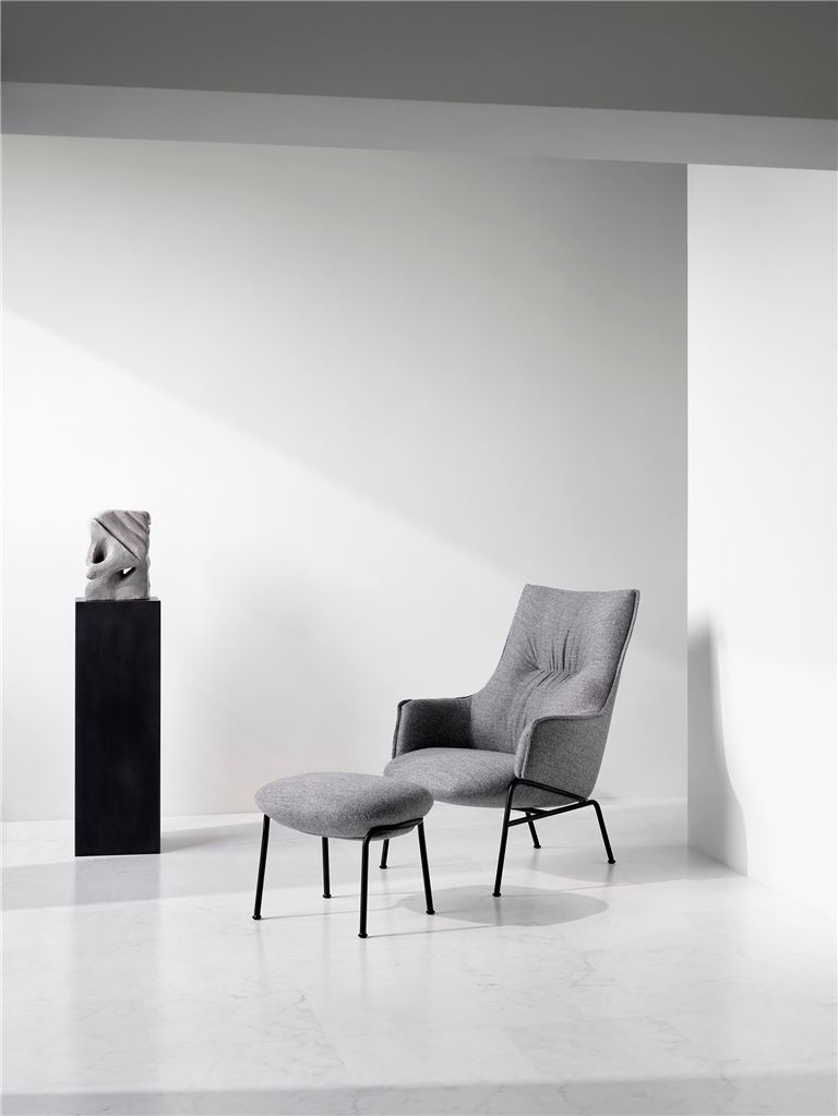 Wendelbo Aloe Loungestol inkl. Fodskammel - Agata 02/Sort Pulverlakeret Stål