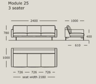 Denne model består af modul 25 med 3 ryghynder og 3 sædepuder.