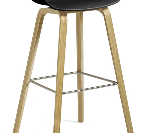 HAY AAS32 ECO Barstol Low SH: 64 cm - Water Based Lacquered Oak Veneer / ECO Black / Footrest Stainless Steel