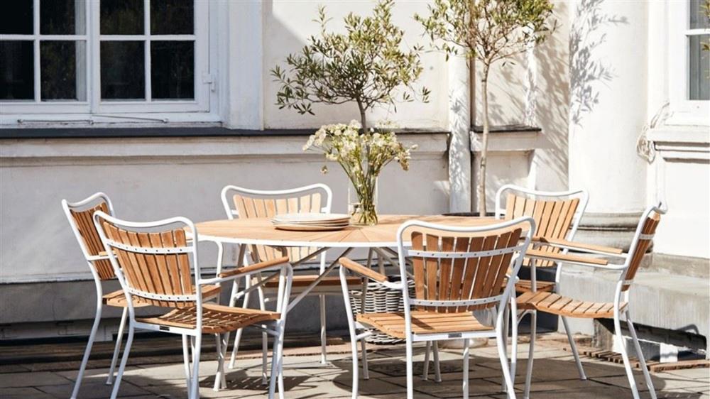 Gæsterne vil sidde godt i de stilrene Marguerit-havestole, der er designet til maksimal komfort. For at vedligeholde de smukke teakdetaljer anbefales en sæbespånebehandling, som både bevarer træets naturlige glød og forlænger dets holdbarhed.