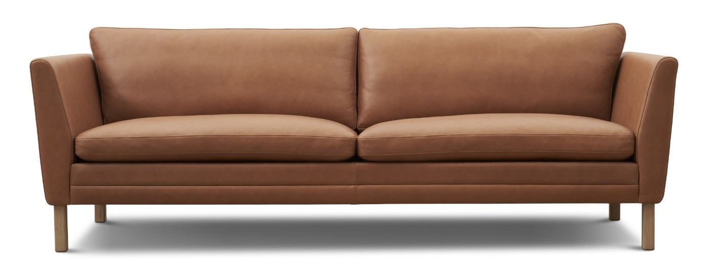 Mogens Hansen MH 2301 3-personers Sofa (2-delt) L 222 cm - Gefion Semianilin Læder/Cognac nr. 15/Sæbebehandlet Eg