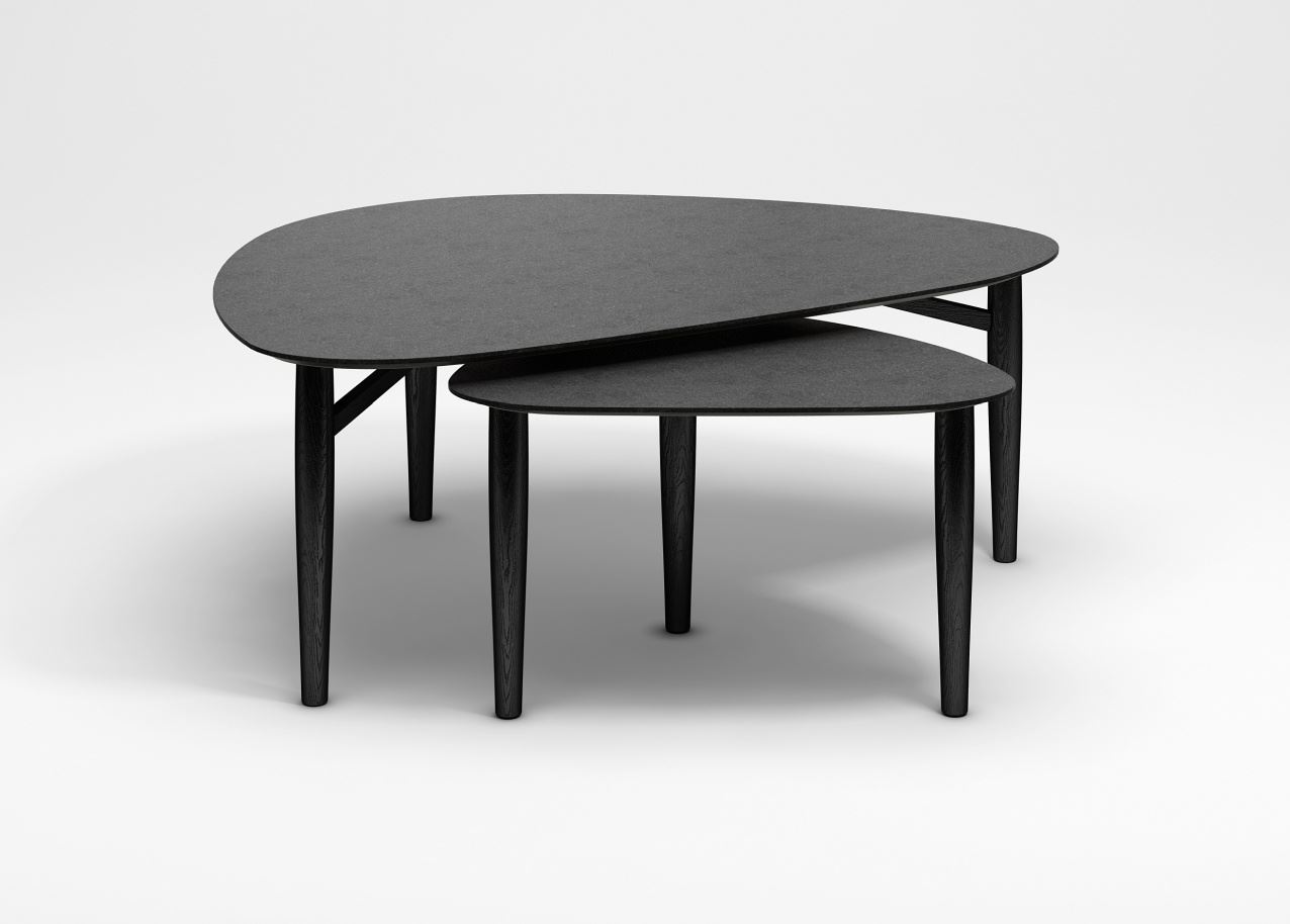 Smukt og tidsløst Katrine Trekant Sofabord fra Thomsen Furniture. Sofabordet er dansk design, der smelter sammen med gamle håndværksmæssige traditioner. Det både stilrene og minimalistiske bord kan placeres mange steder i rummet og ser fantastisk ud. Bordpladen er lavet i 19 mm sort MDF med stenlook laminat og bordben i sort eg. Den fleksible Katrine-sofabordserie kommer både i en stor og en lille udgave og ser yderst elegant ud som et sæt. Hvis en bordkombination ønskes anbefaler vi en højdeforskel på 5 cm mellem det laveste og det højeste bord.