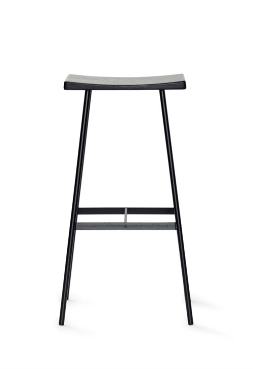 En barstol med kant og karakter fra Andersen Furniture. Denne model er med et smukt sæde i naturfarvet, massiv sort egetræ og med et stel i sort stål. Der er monteret vinklede dupsko på alle ben til at skabe optimal stabilitet.
