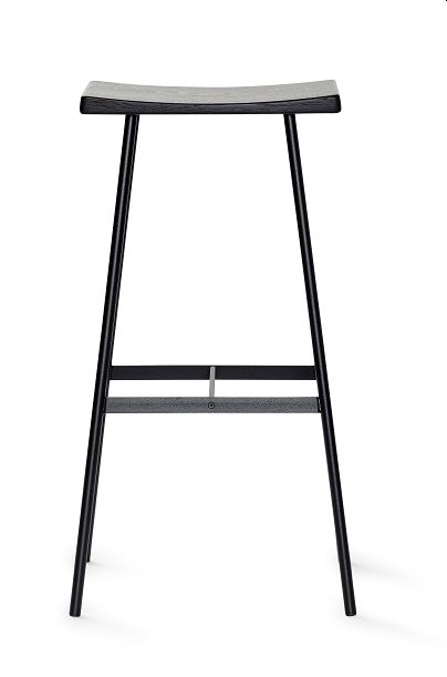 En barstol med kant og karakter fra Andersen Furniture. Denne model er med et smukt sæde i naturfarvet, massiv sort egetræ og med et stel i sort stål. Der er monteret vinklede dupsko på alle ben til at skabe optimal stabilitet.