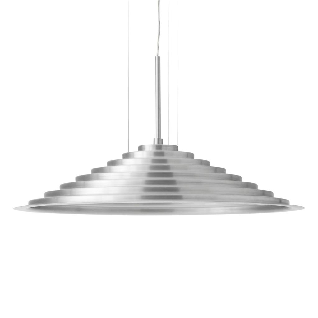 Med sin bølgede, trinvise silhuet i børstet aluminium og sit blødt diffunderede skær giver Chancery Pendel et markant udtryk uden tyngde – et design skabt til at svæve højt og bringe rummet i rolig balance. Udstyret med en udskiftelig opal LED-pære og integreret diffuser spreder Chancery et blødt, stemningsfuldt lys, der indbyder til ro og eftertanke