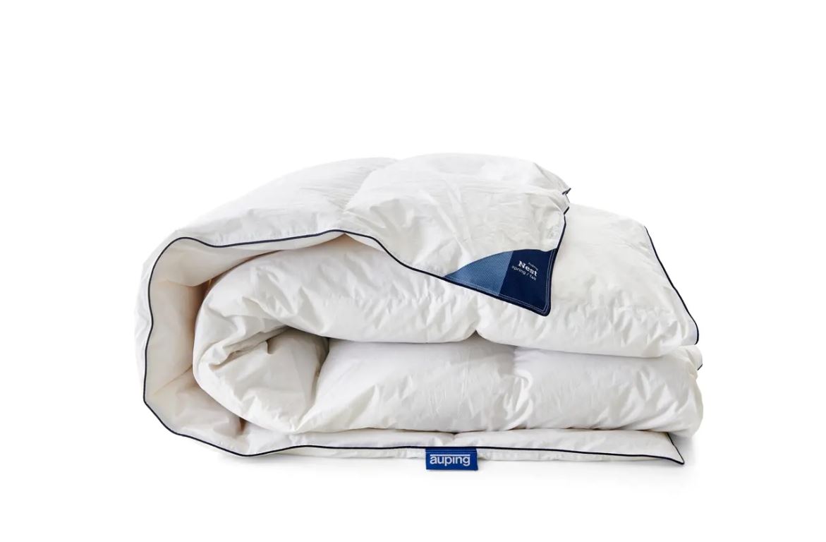 Nest dynen fra Auping er fyldt med 90% genanvendte dun og 10% genanvendte småfjer i høj kvalitet, hvilket betyder at dynen isolerer og ånder optimalt. Dynes føles utroligt let og er nem at ånde i. De genanvendte dun kommer fra dundyner og puder i høj kvalitet, men som forbrugere har valgt at kassere. Efter nøje udvælgelse, rensning og tørring er disse dun mindst lige så rene som helt nye dun. Efter forarbejdningsprocessen bliver kvaliteten og renheden af de genanvendte dun kontrolleret af det uafhængige laboratorium IDFL (International Down and Feather Testing Laboratoy)