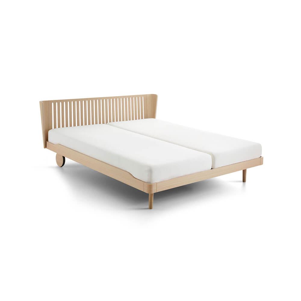 Ud fra sengens elegante detaljer i form af det bølgende design ved sengekanten er der ingen tvivl om, at Noa er lavet med kærlighed og omtanke for hvert element. Det helt specielle ved Noa er hjulene af træ, som ved første øjenkast blot ser ud til at bidrage med et unikt udtryk og fungere som et dekorativt element. Hjulene har dog en skjult drejemekanisme, som gør det nemt at flytte sengen rundt i soveværelset når du får en ny ide til indretningen eller du blot ønsker, at kunne komme helt om bag sengen når der skal gøres rent.