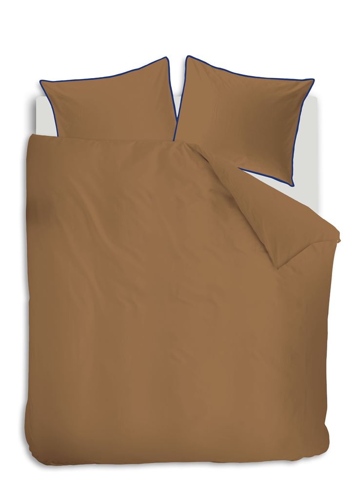 Vi bringer efteråret ind i dit soveværelse. Dette dynebetræk har en fantastisk flot efterårsfarve. Drøm dig væk med en kop morgenkaffe på sengen. Du bliver aldrig træt af at vågne langsomt op til denne lattefarvede nuance. Pudebetrækket har vi forsynet med et blåt kantebånd. Sengesættet udstråler rolighed og kan være med til at skabe et fredfyldt udseende i din indretning på soveværelset. Når bomulden er vasket, føles den dejligt blød at røre ved og har et roligt og mat udseende. Dynebetrækket kommer med en lukkefunktion med lynlås.