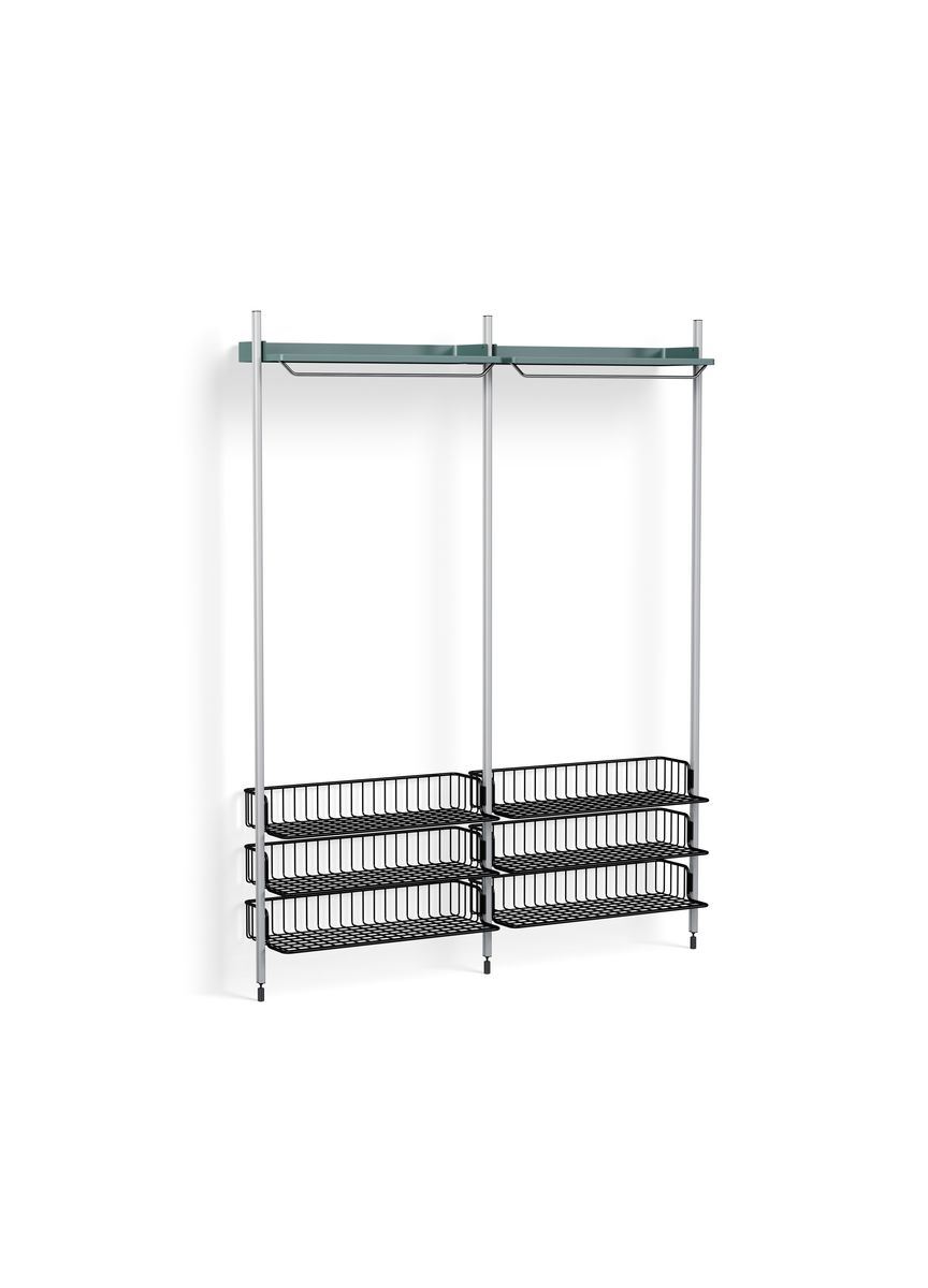 HAY Pier System 1022 2 Columns 162x209 cm - PS Blue Steel/Clear Anodised Profiles/Chromed Wire Shelf