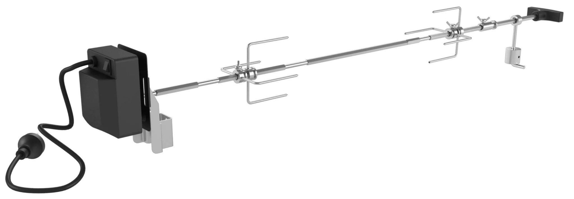 Universal Rotisseri til BeefEater grill med både 3, 4 og 5 brændere. En rotisseri er ideel til grilning af en hel kylling. Rotisseriet roterer kødet rundt under hele grilningen og sørger for en ensartet grilning af kødet. Denne rotisseri er komplet med spyd, gafler og motor.