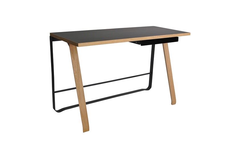 Bent Hansen Hemingway Skrivebord m. Opladerstation & Skuffe L: 120 cm - Matlakeret Eg/Black Linoleum