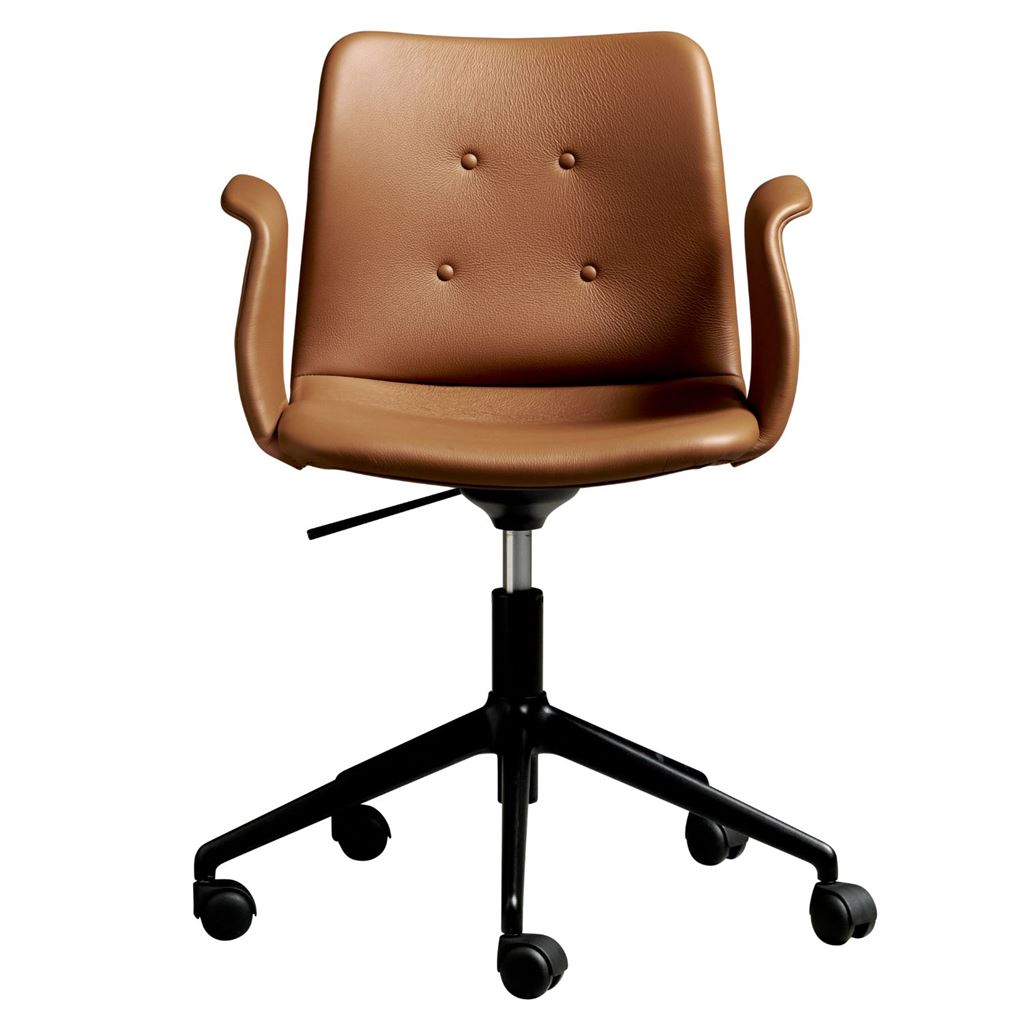 Bent Hansen Primum Armstol Højdejusterbar m. Drejestel+Hjul - Zenzo 223 Cognac Læder/Sort Metalben
