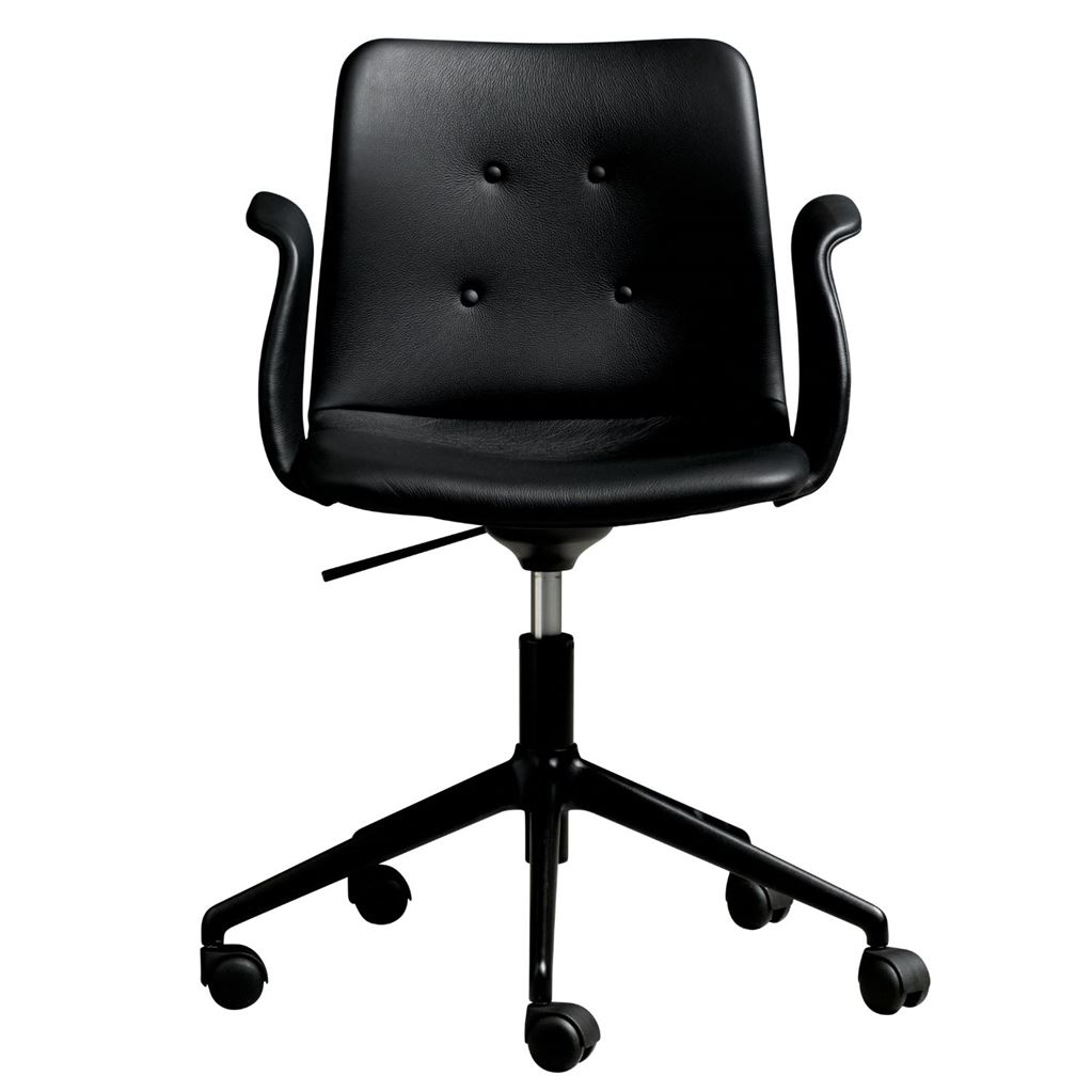 Bent Hansen Primum Armstol Højdejusterbar m. Drejestel+Hjul - Zenzo 207 Sort Læder/Sort Metalben