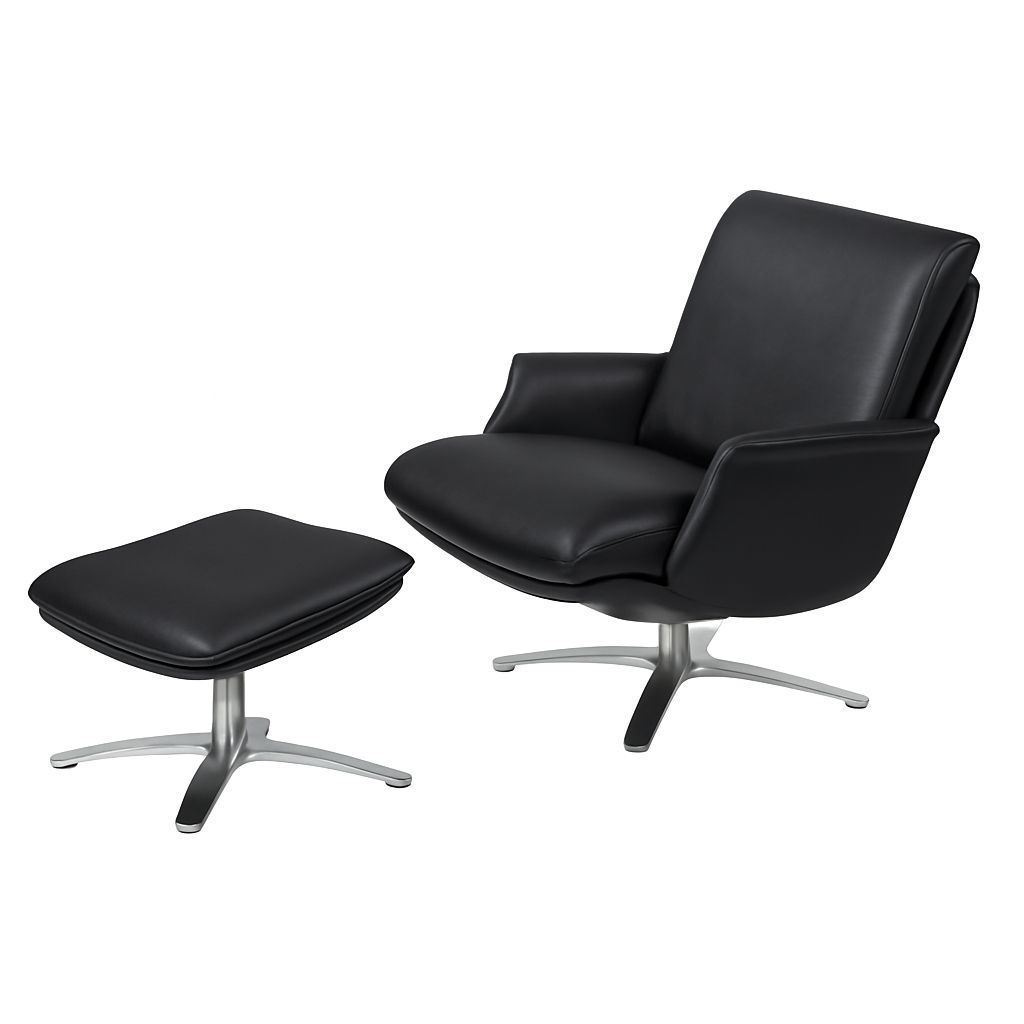 BERG Furniture Nasa Lav Lænestol inkl. Skammel SH: 46 cm - Mat Aluminium/Berg Soft Sort Læder