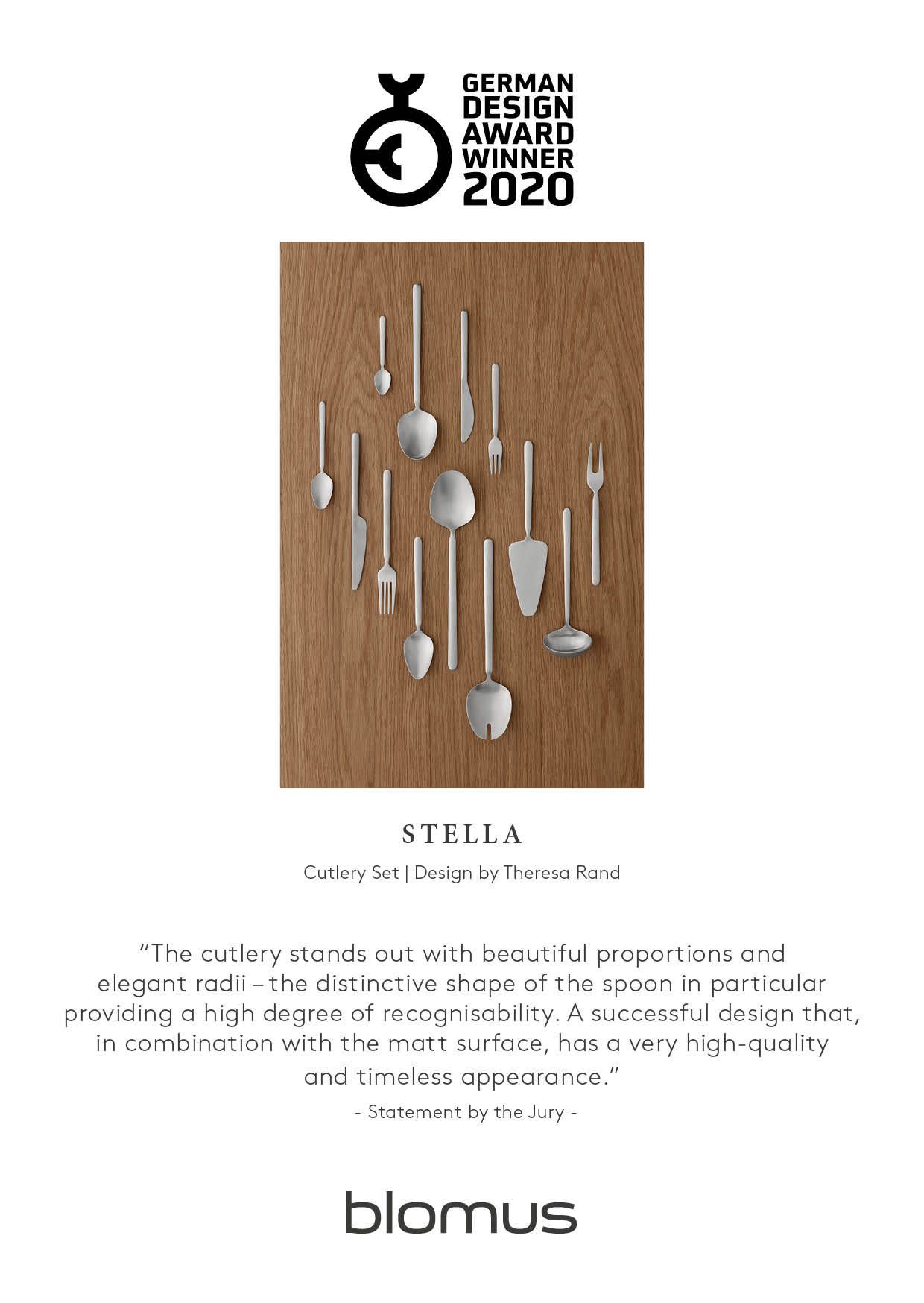 Designeren bag Stella er Theresa Rand, som vandt German Design Award 2020 for bestikkets smukke proportioner, hvor især skeernes karakteristiske form vækker genkendelighed. Bestikket roses for dets vellykkede design, som i kombination med bestikkets matte overflade vidner om høj kvalitet og tidløshed.