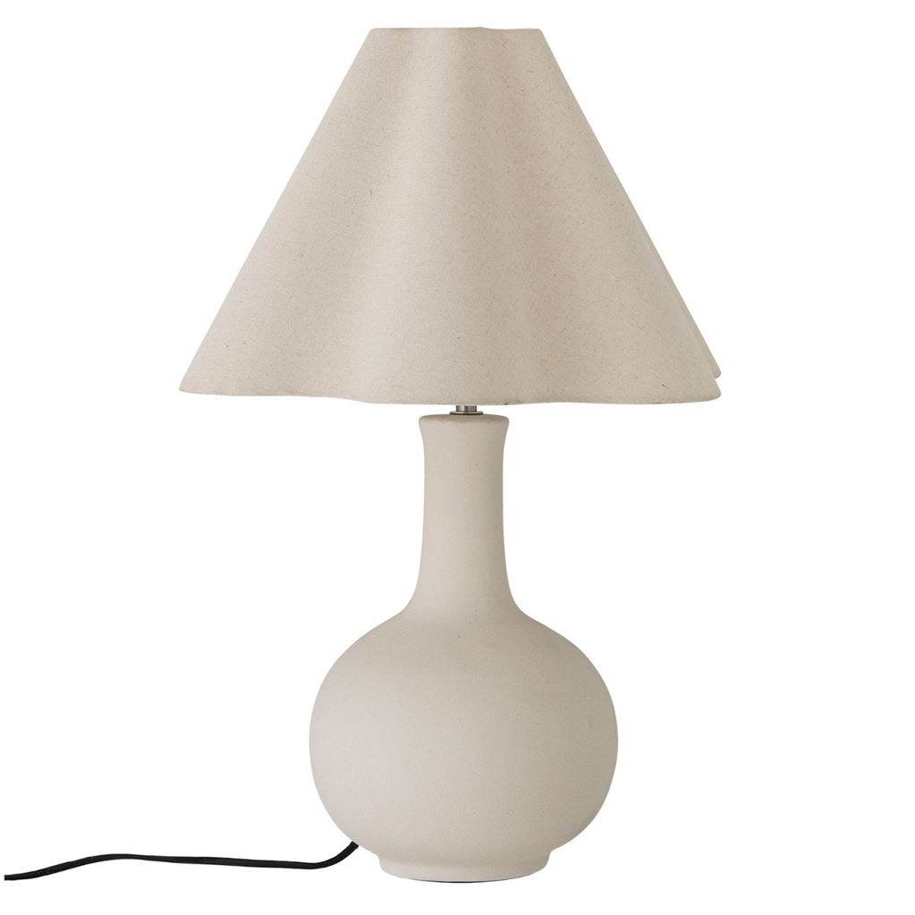 Heide bordlampen fra Bloomingville er en stilfuld, tone-i-tone lampe med en mat glasurfinish og en smuk, struktureret overflade. Den runde base og den bløde, kurvede skærm giver lampen et harmonisk og elegant udseende, der passer perfekt til moderne, minimalistiske indretninger. Ideel til at skabe en varm og indbydende stemning i stuen, soveværelset eller på kontoret.