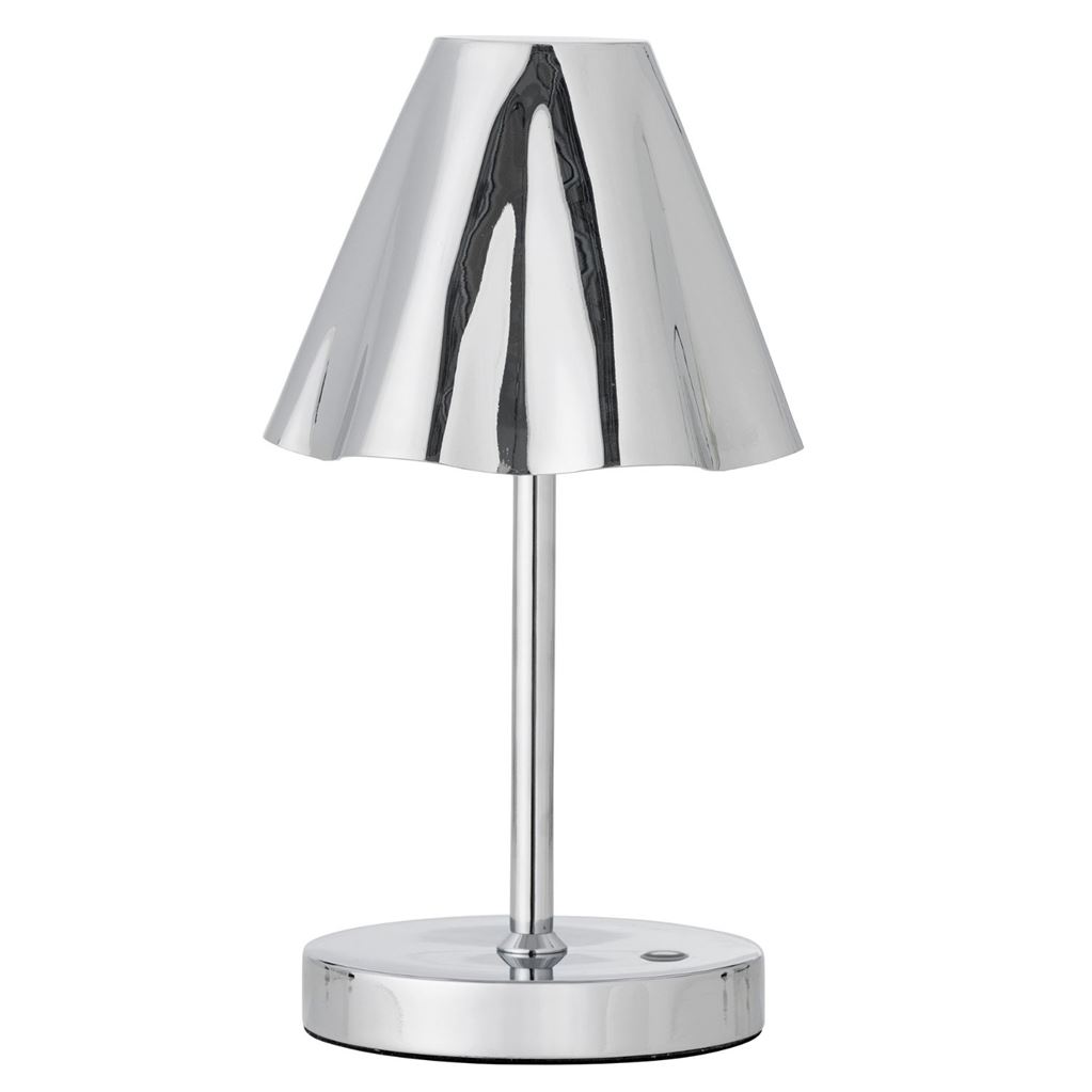 Lianna Portable Lamp fra Bloomingville er en praktisk, genopladelig og bærbar bordlampe. Den har et elegant kromdesign i sølv og en bølget lampeskærm, der giver et stilfuldt touch til det moderne hjem. Lampen kan placeres på sofabordet, natbordet eller i en reol og let flyttes rundt efter behov. Der medfølger en opladningsledning, så lampen altid er klar til brug.