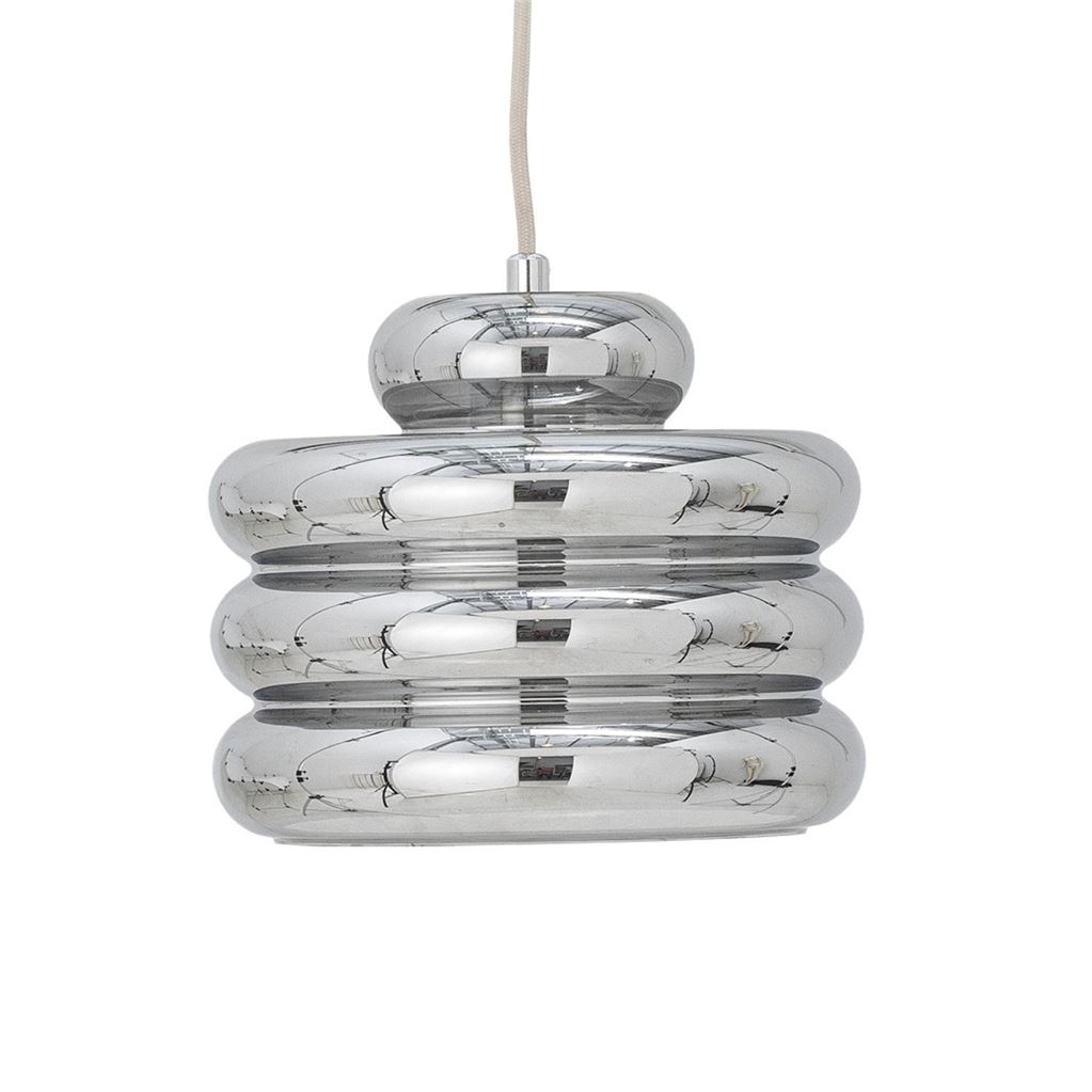 Spike Pendlen fra Bloomingville er en elegant loftlampe i sølvfarvet glas. Dens runde design giver et organisk og harmonisk udtryk. Med sin kromlignende sølvfi Se mere ...