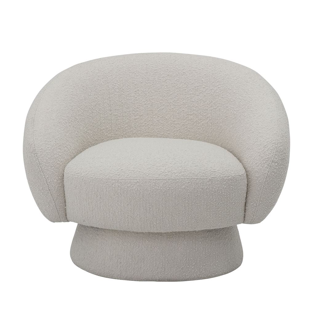 Ted loungestolen fra Bloomingville er en trendy loungestol som passer ind i ethvert hjem. Lad den bløde og behagelige stol være midtpunkt i din stue, hvor du nemt kan kombinere møbler og tekstiler i adskillige farver og materialer. Stolen har et ryglæn der indrammer kroppen på afslappende manér og tillader at du kan læne dig tilbage og virkelig slappe af. Stolens runde facon gør at den kan blive placeret midt i et rum uden at den kommer til at se malplaceret ud.