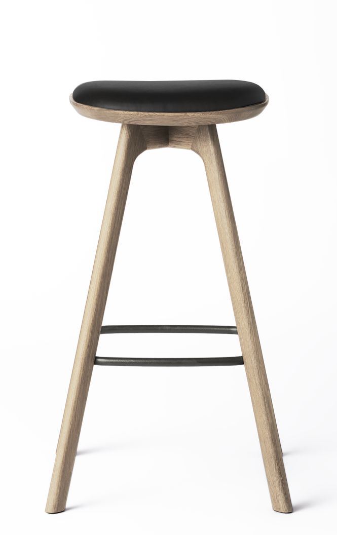 Brdr. Krüger Pauline Barstol H: 75 cm - Waxed Oiled Oak / Black Leather