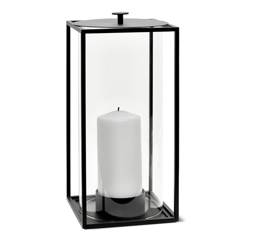 Kubus-serien har fået tilføjet en elegant lanterne, der er designet af Morgens Lassens barnebarn, Søren Lassen. Lanternens design er stilren og passer derfor nemt ind i eksisterende indretninger. Lanternen kan bruges til at skabe en hyggelig atmosfære både udenfor i haven, eller på altanen, men også indenfor i hjemmet. Lanternen har et låg, som sikrer at lyset ikke blæser ud på vindfulde dage og det smukke, runde glasindsats kan benyttes med levende fyrfadslys eller bloklys, men du kan også vælge at benytte et miljøvenligt LED-lys. Lanternen har en højde på 20 cm og er lavet af sort pulverlakeret metal.