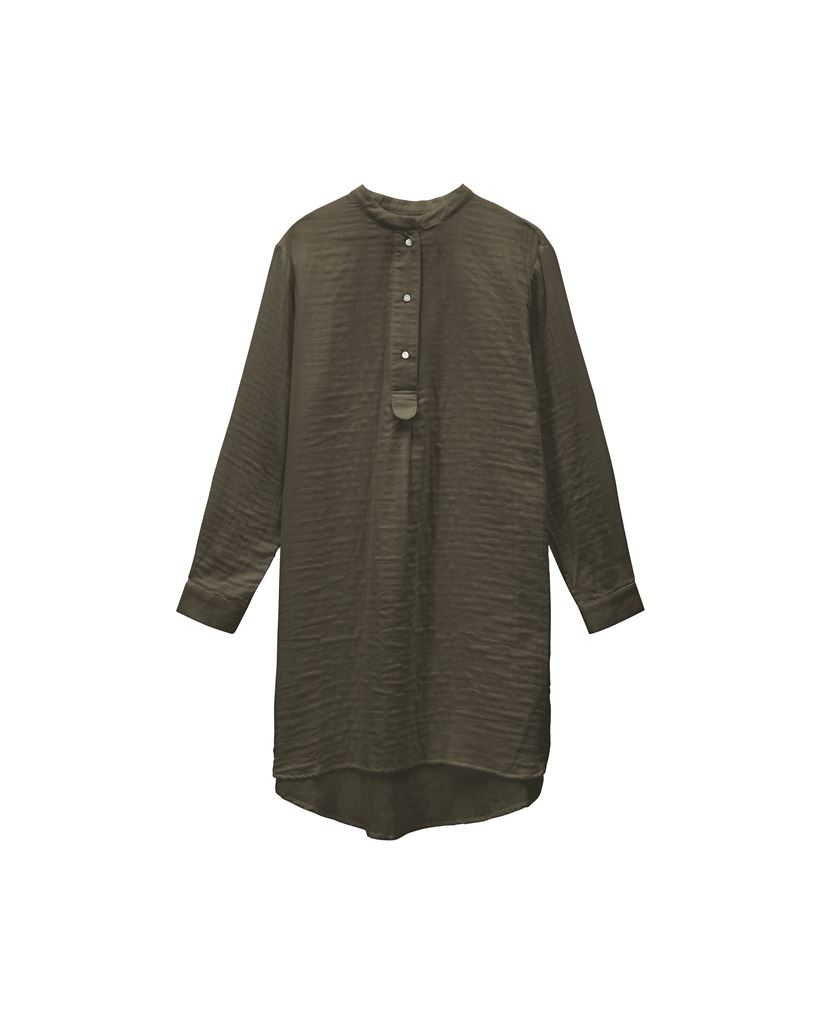 Denne tidløse skjortekjole fra By Nord er skabt til dig, der søger blødhed og minimalisme. Skjortekjolen er lavet af dobbeltsidet bomuld og har en lettere krølle udseende som er ideelt til mere afslappende brug. Dens pasform giver dig mulighed for god bevægelse og så er den grønbrune farve dejlig at se på. Kombiner den med en strik og et par bukser eller nyd at have bare ben under den.