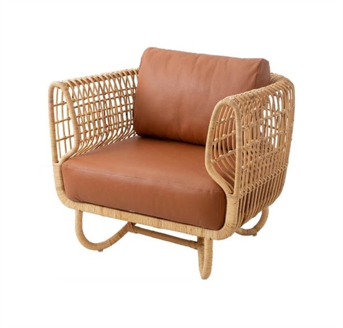 Cane-line Nest Loungestol Indoor - Natural Rattan/Cognac Leather