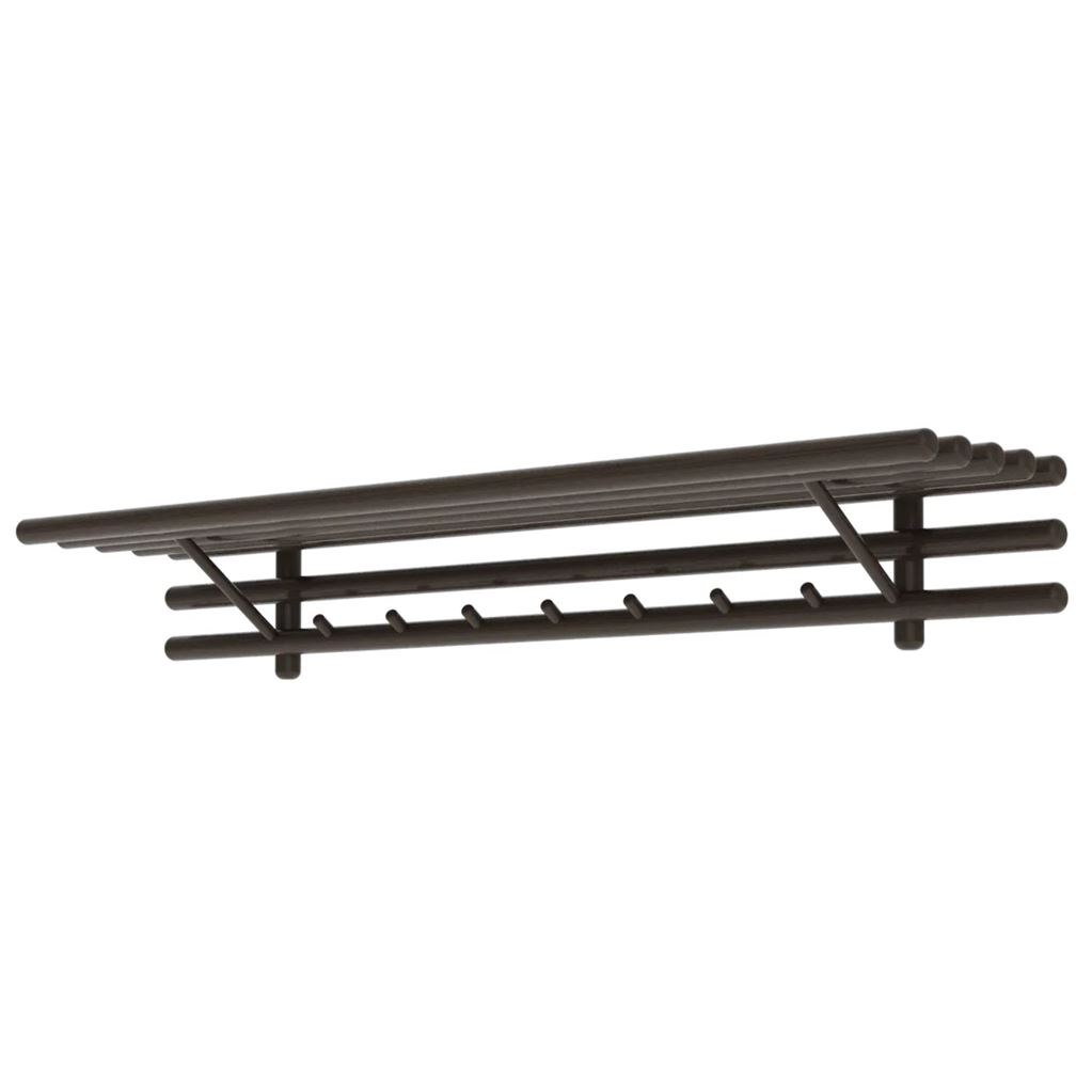 Sticks Knagerække med Hattehylde er en funktionel og stilfuld tilføjelse til hjemmets indretning. Den er udført i mahogni, hvor den dybe, mørke finish tilfører rummet et eksklusivt og elegant udtryk. Det pinde-inspirerede design giver rigelig plads til jakker og accessories, mens den indbyggede hattehylde skaber ekstra opbevaring til hatte, æsker eller dekorative genstande.