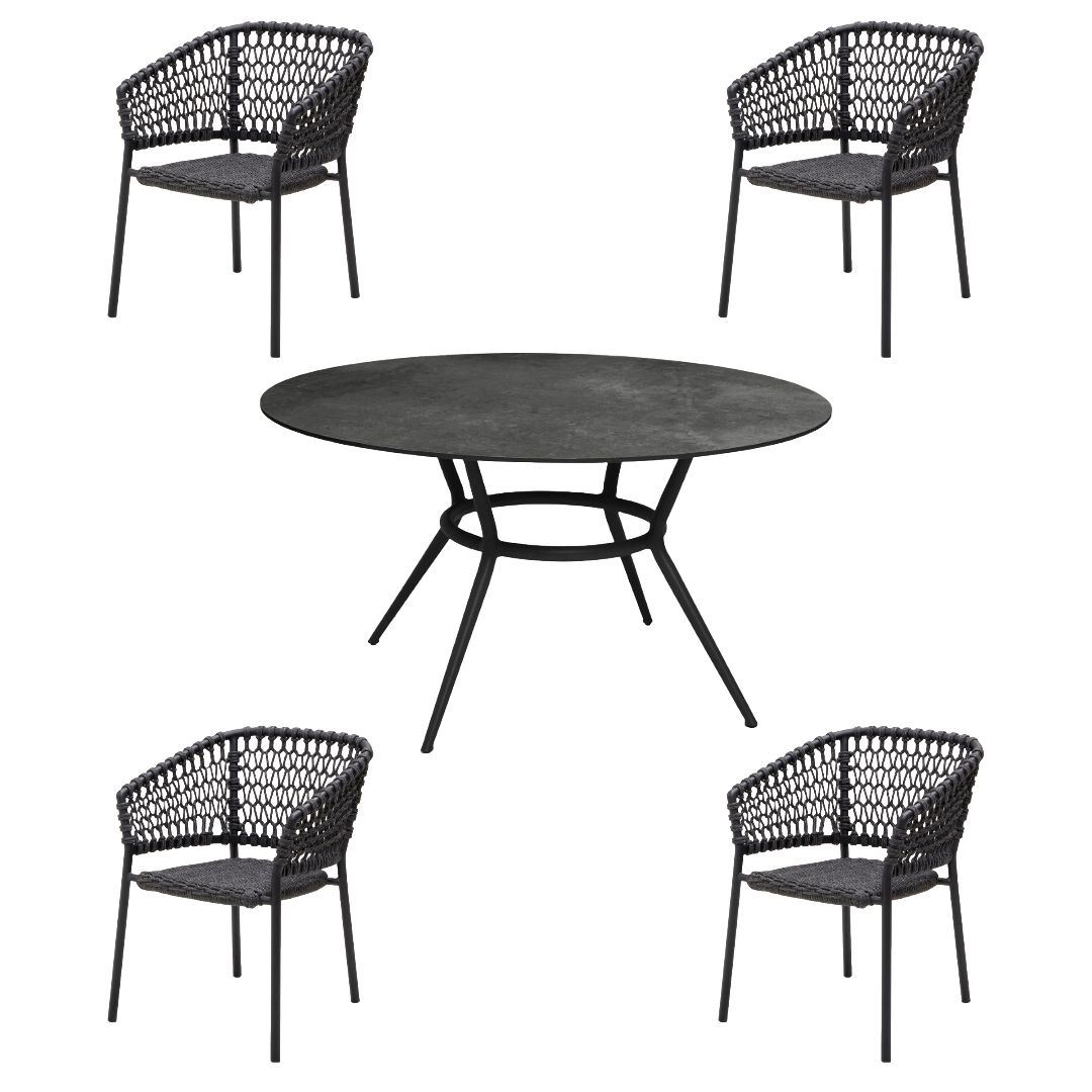 Cane-line Outdoor Joy Havebord + Ocean Stole Havemøbelsæt - Lava Grey/Dark Grey