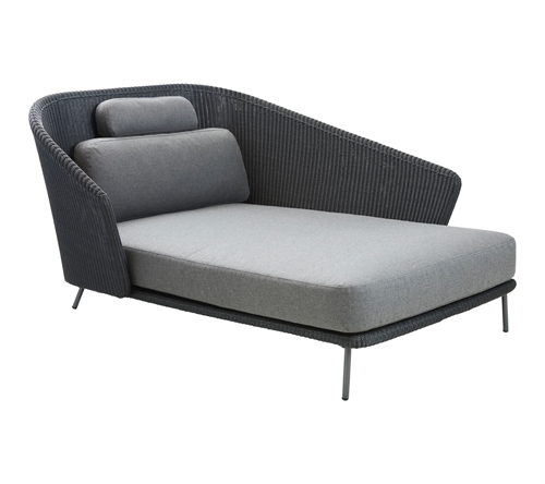 Cane-line har lavet serien Mega, med fokus på den basale farve, så du har et stilrent look, samt et møbel der holder i mange år. Denne daybed fås både højre og venstre vendt.