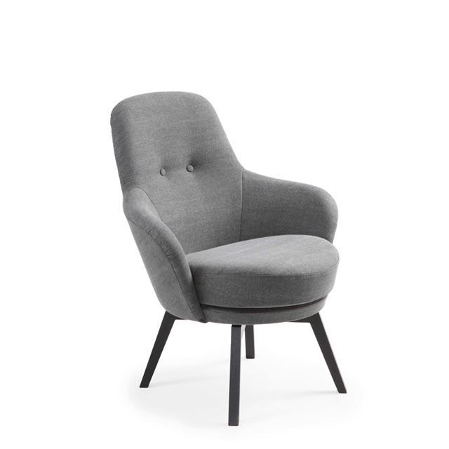 Den elegante Gaga lænestol har et understel i sortbejdset eg og sædet er betrukket med Evita møbelstof. Stolen har et tidløst og moderne design, og byder på en rigtig god siddekomfort. Stolens rene linjer og simple design gør det nemt at tilføje til indretningen. Stolen har en indbygget drejefunktion, som gør det muligt at dreje 360 grader rundt imens man sidder i den, og stolens rummelige sæde gør plads til, at du kan have en pude eller to i ryggen. Så sæt dig i stolen og slap af efter en lang dag, imens du nyder din yndlingsdrik.