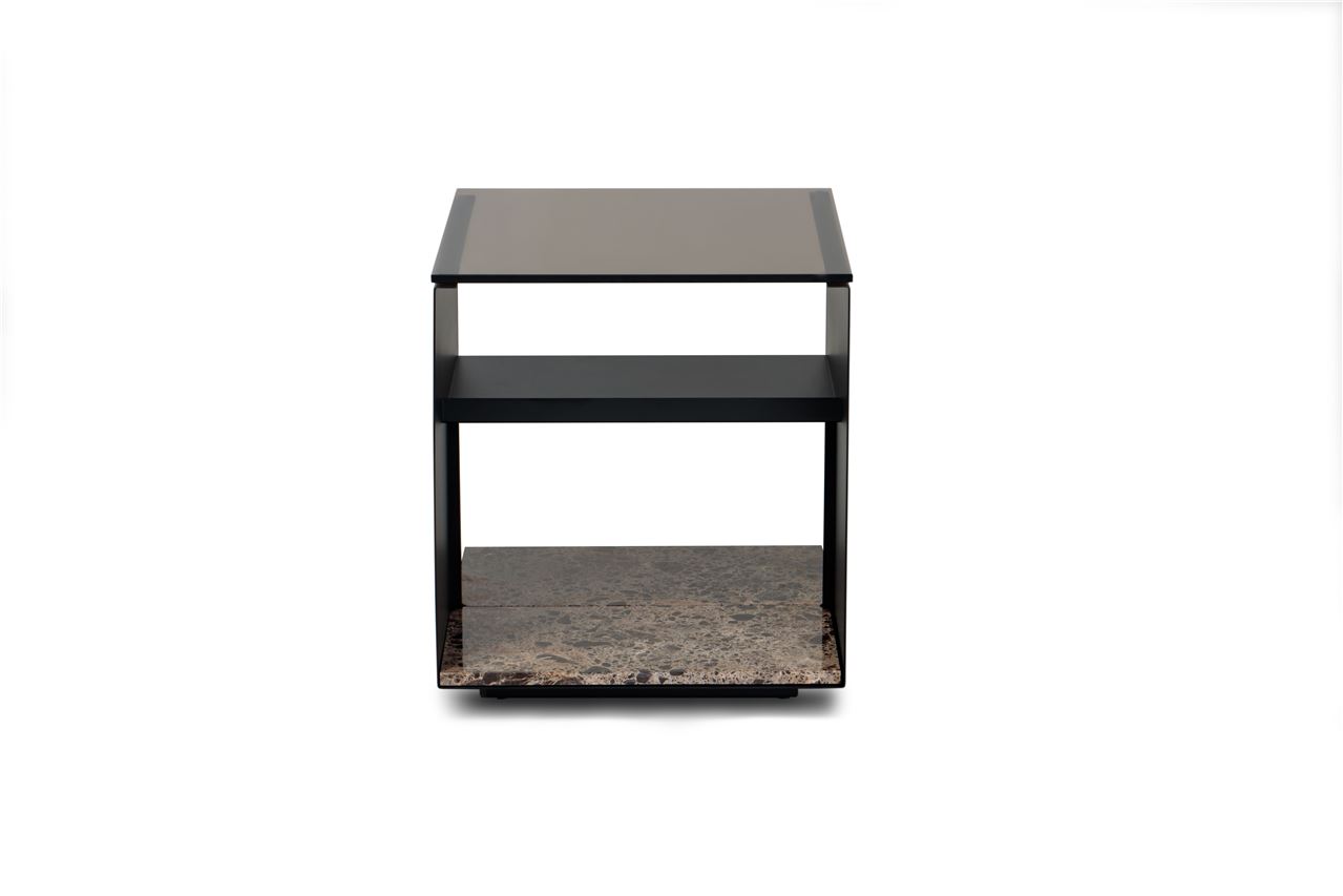 Wendelbo Expose Side Table Small 45x45 cm - Dark Emerador Marble w. Smoked Glass/Black Powder Coated Steel